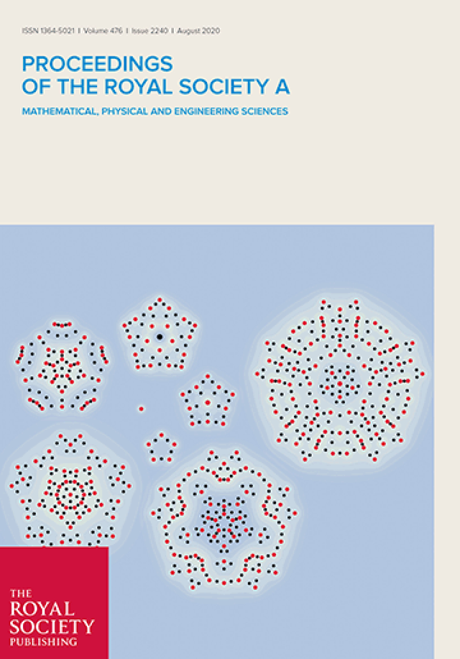 The current issue of the Proceedings of the Royal Society A1 1covering mathematical, physical, and engineering sciences, as opposed to the "B" Proceedings, which covers biological sciences features cover artwork made by Vikas Krishnamurthy, Miles Wheeler, Darren Crowdy, Adrian Constantin, and me.