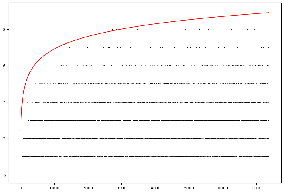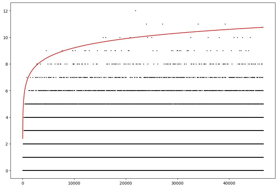 Let's plot $B(N)$ and a reasonable curve. Below, I plot $B(N)$ and the curve $\log(N)$.