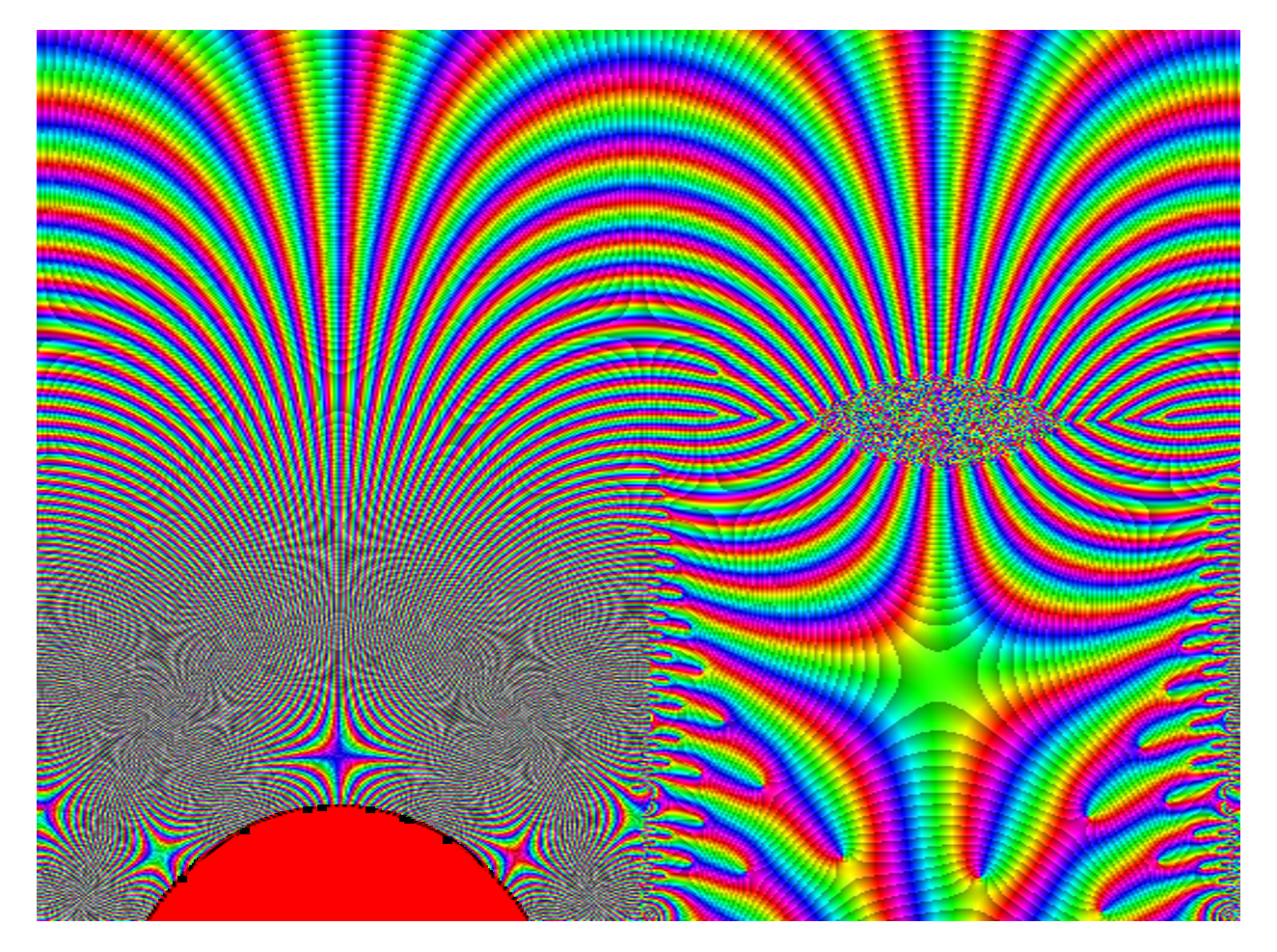 As a final note, I’ll add that I mistyped several times in the preparation of the images for this talk. Included below are a few of the interesting-looking mistakes. The first two resulted from incorrectly applied conformal mappings, while the third came from incorrectly applied color correction.