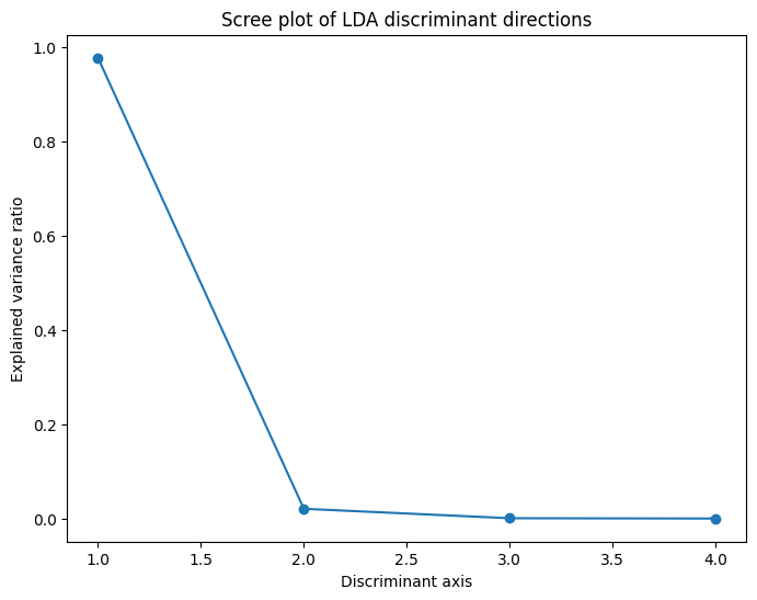 print("Explained variance ratio (original):", lda.explained_variance_ratio_)